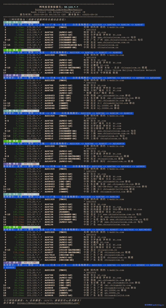 - 韩国→北京/上海/广州延迟普遍在 160ms 左右